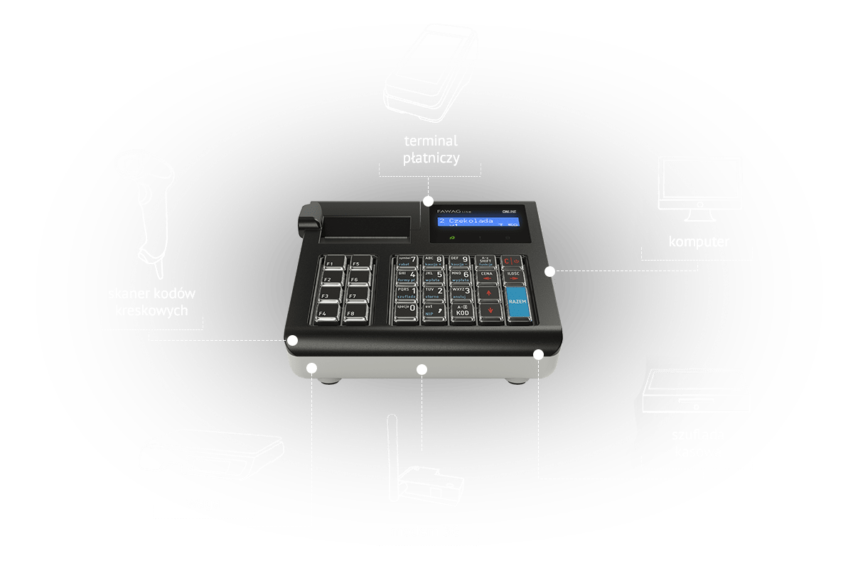 Współpracuje w kasą FAWAG Lite Online (1.02, 2.01)
